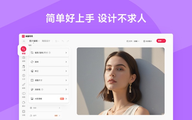 美图秀秀是最简单的图片处理工具,能快速实现专业级修图效果。AI 工具持续上新,人人都能做好图!