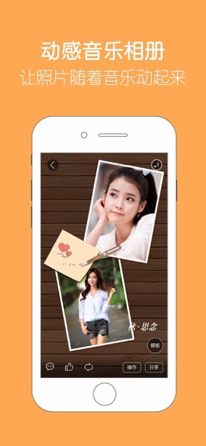 照片变动感音乐相册、排版制作精美图文、制作个性杂志,让动感音乐大片惊艳你的朋友圈。提供多种相册模板,让照片分享更简单,更有趣。更有照片配字功能,轻松讲述每张照片的故事。