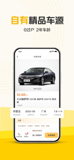 一手车源,主机厂直采;2 年准新车,全程自营维修保养;车况透明,三方权威检测