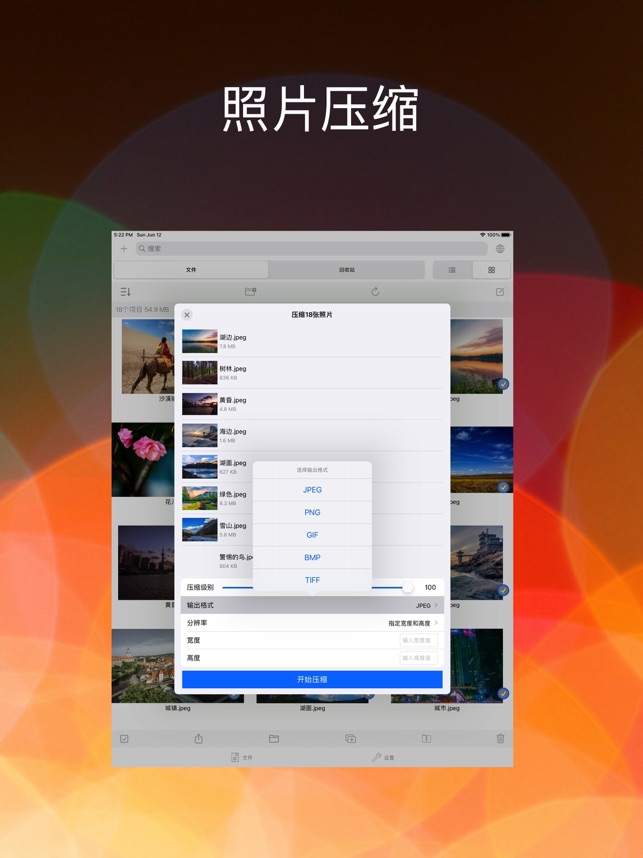 全能的压缩和解压缩工具,支持 ZIP、RAR、7z 格式文件的解压,支持创建 ZIP、7z 格式的压缩文件。支持照片、图片、视频压缩,另有功能完善的文件管理功能,可以方便、快捷地管理您各种格式的文件。