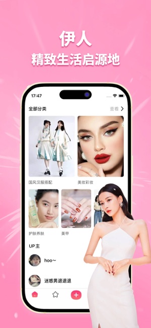 伊人 APP 围绕用户打造变美生态互助圈,以女性最为关心的生活方式为基础,推出服装穿搭、美妆彩妆、护肤养肤、美发美甲等一些列教学和交流内容。