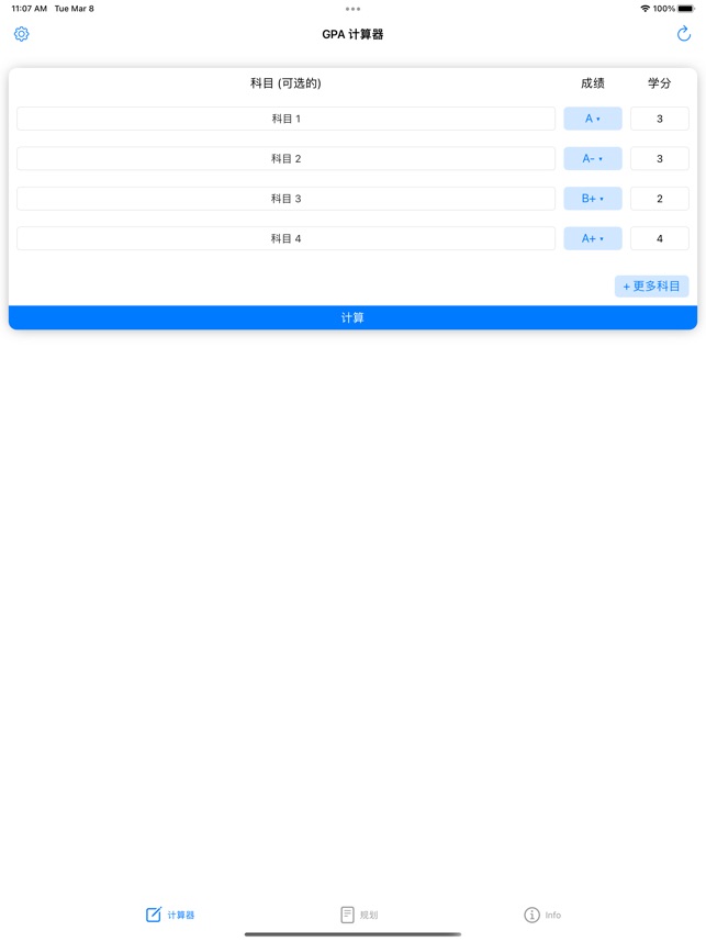 《GPA 计算器 - GPA 绩点计算器 - 加权平均分绩点 1.2.0》适用介绍