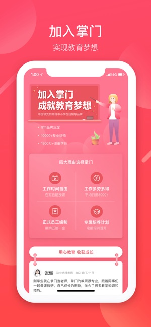 工作时间自由、工资多劳多、正式员工编制,还能定期晋升加薪。快来免费报名加入掌门讲师! \\r