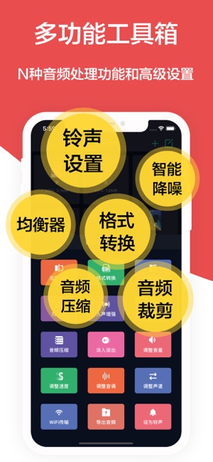 这是一款功能非常丰富的音频处理应用,支持提取视频的音频,支持对音频进行裁剪,格式转换,均衡器处理,降噪等 N 种音频处理功能,支持一键设置铃声。