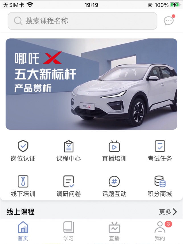 哪吒汽车线上学习平台,在这个平台上,您将全面的了解这个品牌的全部信息。 各种精品课程,为您的职业生涯保驾护航,更有多种培训形式、直播、漫画、视频、实景,让学习更有乐趣。