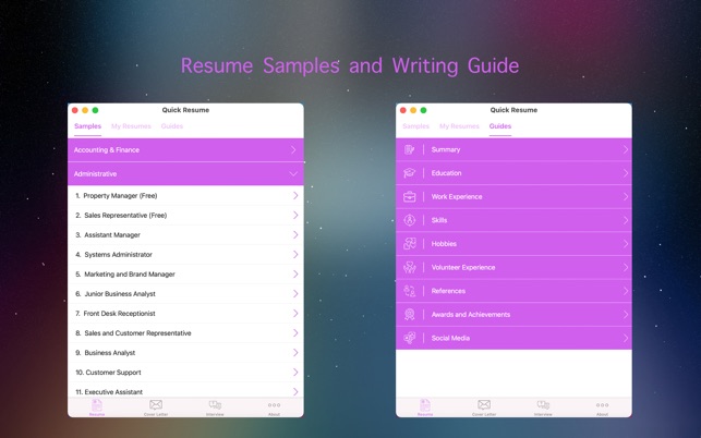 In a single click, Quick Resume offers you professional resume formats and designs.