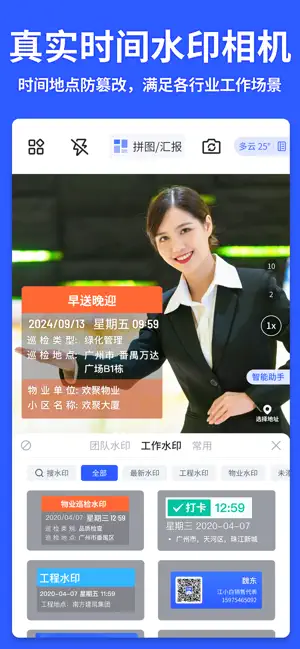 马克水印相机-真实时间地点和工作水印 – 时间真实防篡改:物业工程快消等行业适用