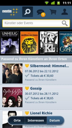 Mit einem Herz k?nnen Sie sich schnell und einfach Künstler merken und automatisch aus Ihrer Musikbibliothek oder dem Webshop Ticketalarm übernehmen. Zukünftig sind Sie über News und neue Events zu Ihren Künstlern informiert. Lesen Sie Fan-Reports von anderen Nutzern und lassen Sie mit der neuen Fan-Bildergalerie einmalige Live-Erlebnisse Revue passieren. Wenn Sie ein Event besucht haben, k?nnen Sie mit der EVENTIM App von unterwegs Ihren eigenen Fan-Report v