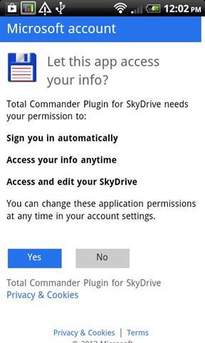 这是行不通的独立!不要安装,如果你不使用的!这个插件允许从中访问的的云驱动器。它需要 Android2.2 或更高版本由于使用了 Microsoft 库。您还需要一个 Windows Live 帐户来访问 SkyDrive 中。多个帐户的支持。