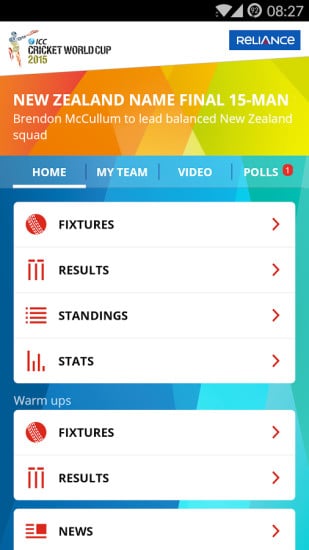 The official ICC Cricket World Cup 2015 app gives you full tournament coverage of all the action from Australia and New Zealand including live scores, official video and match highlights, ball by ball commentary, notifications, exclusive video and much more. Key features● ICC Live Match Centre with fastest ball-by-ball scores & commentary● Exclusive match videos & highlights● Chance to pledge your support for your team and get the latest updates● Score notifications● Tournament stats● Breaking news, features & exclusive interviews ● Fixtures, results & match reports ● Exclusive columns from Cricket World Cup legends● Polls & social hub to get interactive with #cwc15
