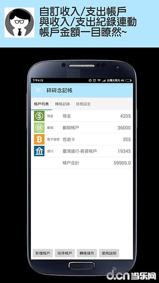 快速、简单、有趣的记帐软件,让你记帐不再是枯燥乏味、三分钟热度!! 为不要成为你开始记帐的第一笔花费,碎碎念记帐提供免费安装使用,期望可以帮你养成记帐的好习惯! 市面上有许多记帐 APP,有的功能强大却操作复杂,有的功能过于阳春不符使用需求!! 而碎碎念记帐,主要以快速记帐为目标,设计记帐方式就跟聊天一样,如果你已经习惯传讯软件的操作 那更可以无缝接轨使用碎碎念记帐。 主要功能: *.对话式记帐,记帐零学习。 *.集成记帐接口,加快记帐速度。 *.内置百种类别与项目,并可自订项目方便日后选择。 *.目标提供更多样化的碎碎念人物,让你记帐变有趣。 *.自动更新回复词汇,让碎碎念更人性化。 *.图形化的统计分析,让你轻松掌握记帐明细。 *.每日碎碎念提醒你记帐,让你每日记帐不遗漏。 *.支持搜寻功能,可以搜寻特定日期区间或项目的数据。 *.支持帐户管理功能,支出与收入会与帐户进行连动。 *.支持 QR Code 扫描电子发票功能。