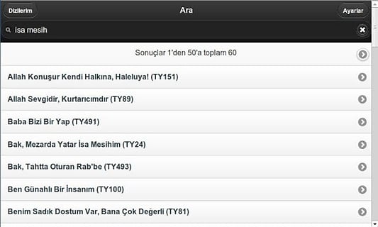 * İlahi numara, başlık veya metin olarak arayabilirsiniz\\r