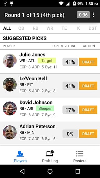 Sync with your live draft to get expert advice on who to pick for each round, while your draft unfolds in real-time. Drafted players will be automatically tracked for you. \\r