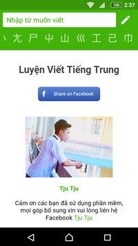 Chinese characters is more difficult to write with beginer. This app help you learn how to writeChinese characters with stroke order★ App features- Learn how to write chinese character with stroke order- Chinese handwriting support- Practice by draw on screen and real time checking- Get word from Chinese Dictionnary- Chinese radical table - Chinese simplified and Chinese traditional★ Why use this app- Small and lightweight- Easy to use and interesting, learn chinese writing any where- Offline work don\'t need internet- Chinese handwriting recognize- Over 3000 words★ How to use this app- Type your word want to learn draw- Press animation to learn how to draw with true order- Press write to and draw on screen to practice- Use must draw with true order to continueThanks for use this app, please rate and send feedback to me!