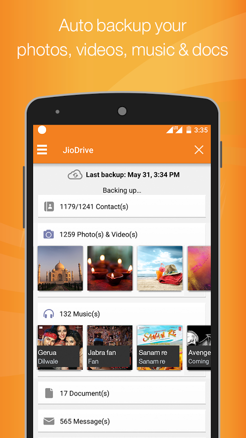 Jio offers you a secure online storage with JioDrive to keep all your photos, videos, docs, songs organized at one place. Files in Jio Drive means you can access them from anywhere, share with anyone. Never again worry about losing your files even if you lose your device.