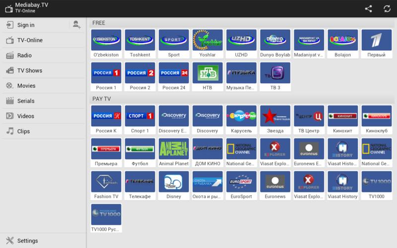 Watch LiveTV, podcasts, videos and listen to favorite music presented by Mediabay.TVFor users from Uzbekistan application use TAS-IX streams presented by Mediabay.UZ.