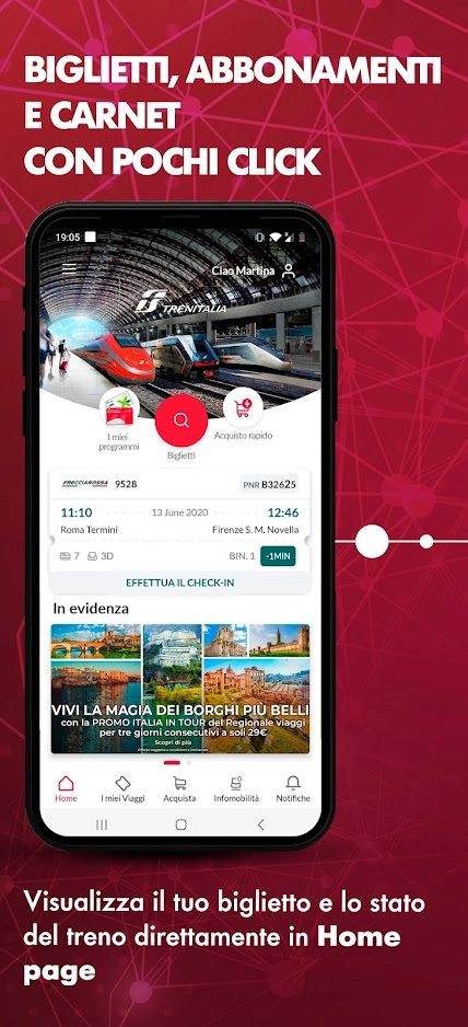 使用地理位置和快速购买功能快速购买门票。根据您的意愿进行支付,从多种可用的支付方式(信用卡、Paypal、Google Pay、Satispay、Amazon Pay 或银行转账)中进行选择,或使用您的 CartaFRECCIA/X-GO 积分、奖金、积分或礼品卡。
