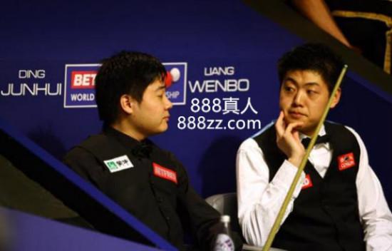 丁俊晖与梁文博赛后接受媒体采访。