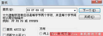 这里我们并不需要管那么无聊的乱码。我们只需要找到我们所需要修改的包子代码就足够了。由前面可得知,我们需要查找的包子代码是 69 07 69 12.